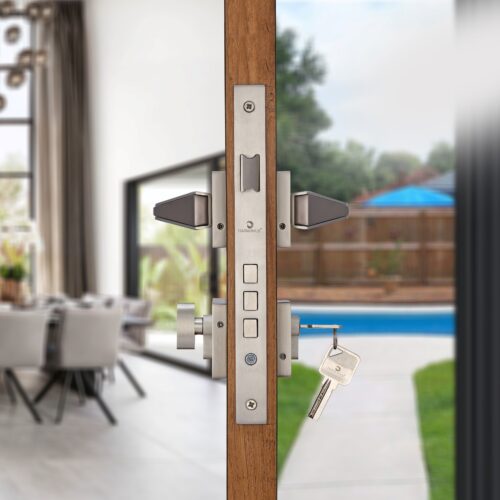 - Robust Locking Mechanism: Includes a mortise lock body (the part installed inside the door edge) with a latch bolt and a deadbolt for security.