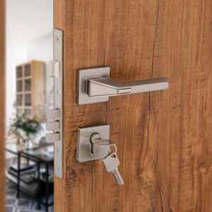 HARMONUS Zinc Alloy Mortise Door Lock Handle/Rose Mortice Handle with Lock Body and 70mm Cylinder Computeries- 3 Keys (Satin)